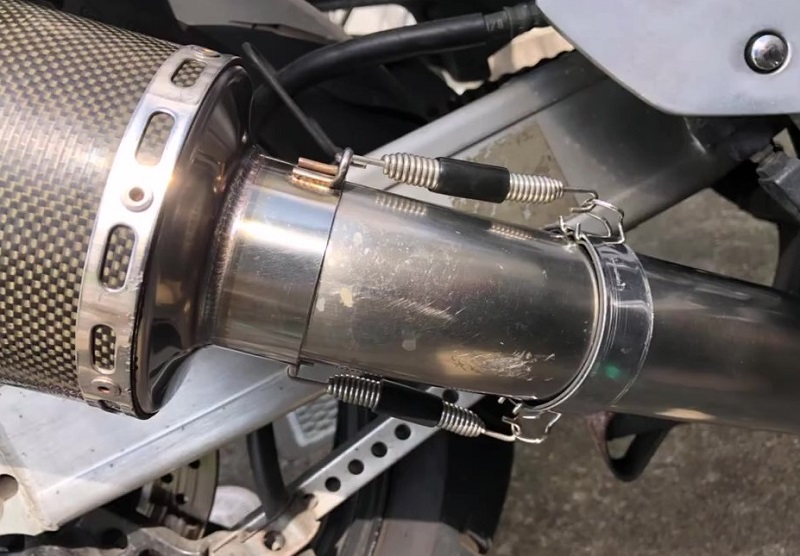 バイクのスプリングフック式サイレンサーを、フックがないエキパイに装着する方法をご紹介します(・ω・)ノ