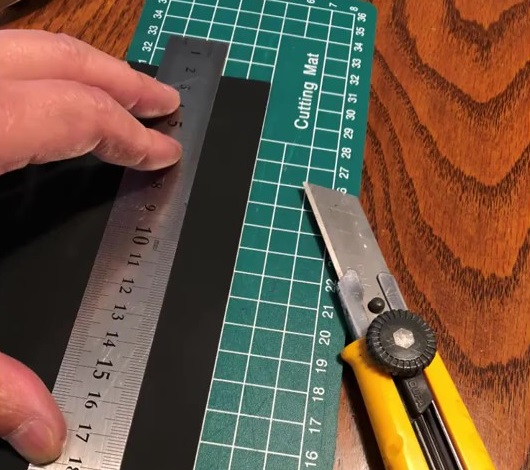 次にサイレンサーバンドの滑り止め兼エキパイの傷付き防止を目的としたゴム板を切り出します。