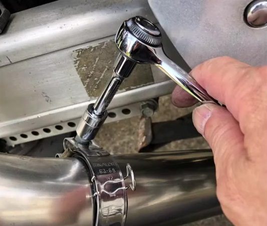 管理人の場合、サイレンサーはメーカーが異なる複数本を所有しており、その日の気分次第で気軽に交換しています。サイレンサーによってフックの取付け位置は異なっていますので、エキパイ側のフックの位置も調整しなくてはならない場合も多く、その場合サイレンサーバンドで留めてあるフックであれば、位置を簡単に動かすことが出来るのも便利です。フック不要のオリジナルサイレンサーを取り付ける場合は、サイレンサーバンドとフックを外せば良いので、フックを溶接したくない方にもお勧めかと思います。