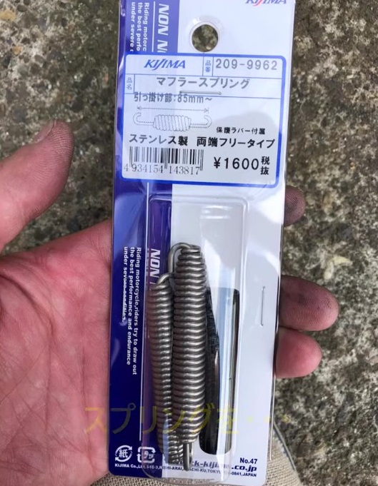通常はサイレンサーとエキパイのフック間の長さがどれくらい空いているのかによって、スプリングの長さが決まってくるのですが、今回の場合はスプリングの長さに合わせてサイレンサーバンドの位置を調整すれば良いので、長さはあまり気にしなくても良いかと思います。