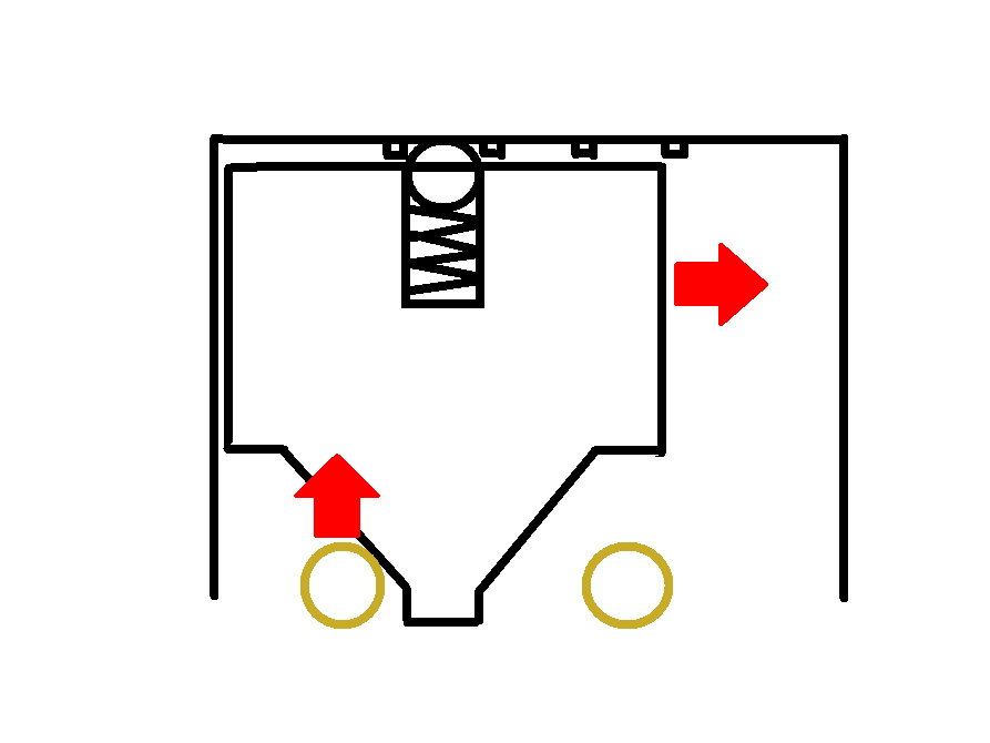 パーツはこの位置に移動する訳ですね。これを左折側にする場合は、逆の力でパーツは右側に押し付けられます。