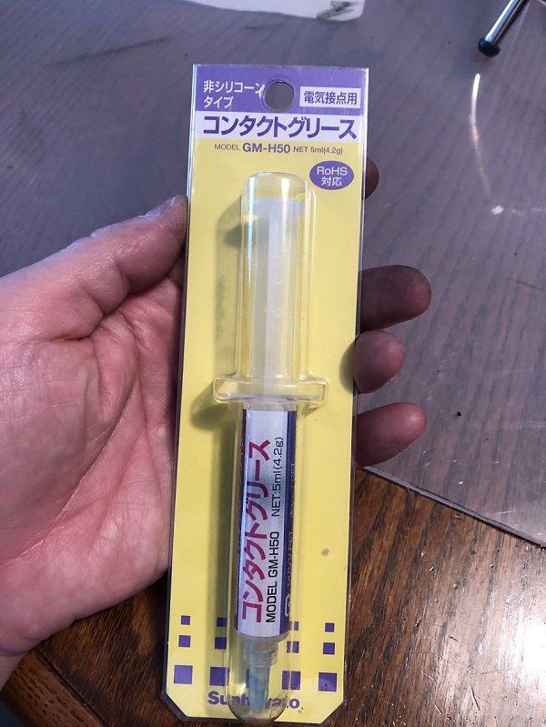 次に、端子パーツの擦れる箇所に、シリコングリスを薄く塗布しました。