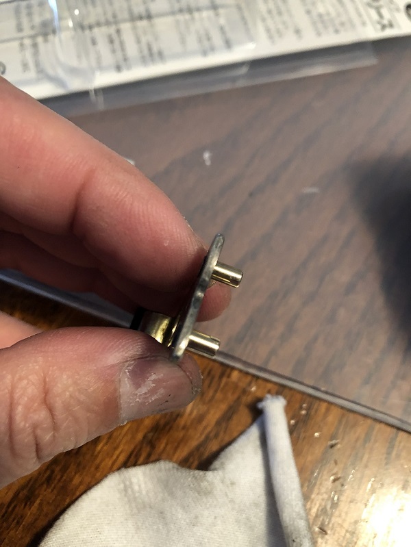 因みにどんな組み合わさり方をしているのかを見て見ましょう。白いパーツの上にレバーの2本の突起が当たります。