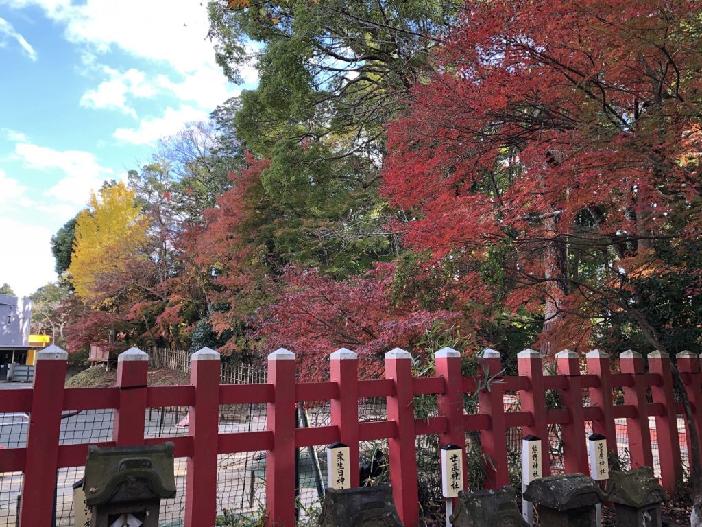 神社の隣には幼稚園があります。そのグランド脇にも色鮮やかな紅葉、銀杏が見えます。