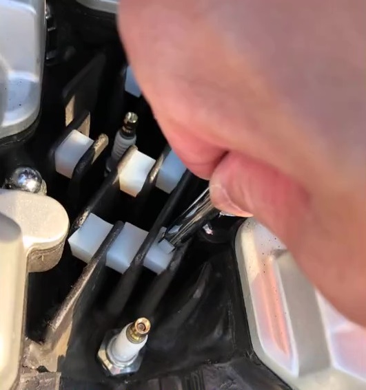 指で押してもしっかり中まで入らないので、ミニモンキーレンチ握り部分の後ろを使って上から押し込むようにしました。