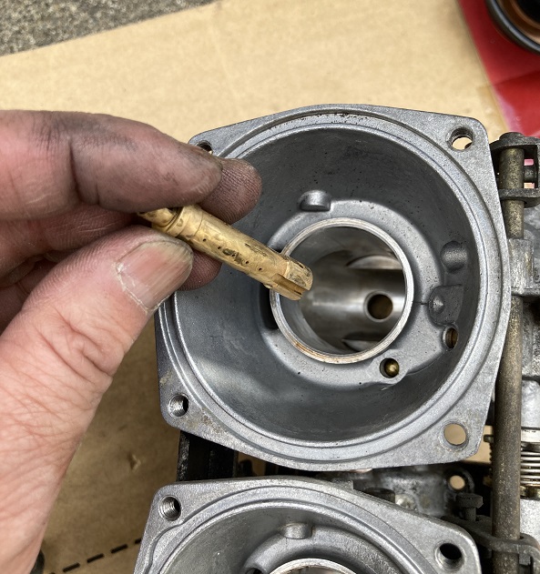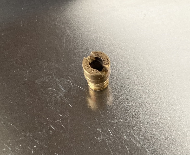 これが外したエアジェットです。いかにも舐めそうなジェットなので、出来れば専用ドライバーで外した方が良いと思います。