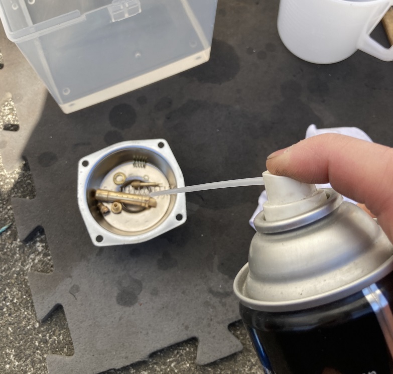 次にジェットやノズルにパーツクリーナーを吹き入れます。