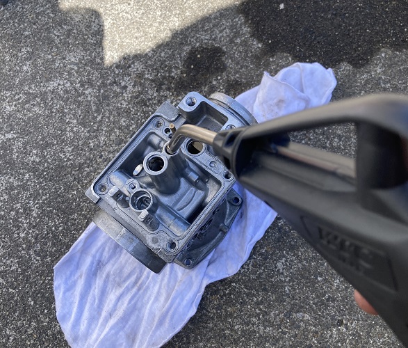 ジェットの場合と同様に灯油で洗浄、パーツクリーナーを吹いた後、コンプレッサーであらゆる径路にエアを通しました。