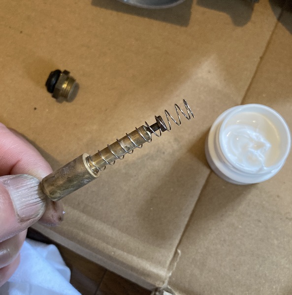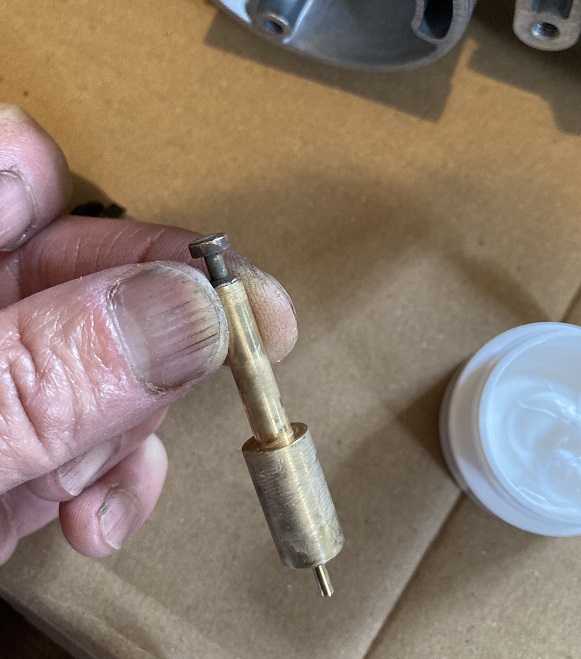 スタータブランジャにフッ素グリースを塗布します。極めて少量でも良く伸びますので、今後の整備でこの容器を使いきることはないのではないかと思いました。