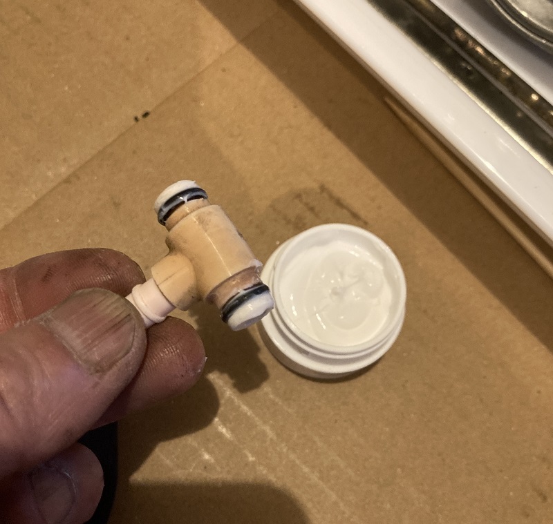 ブリーザーパイプにOリングを取り付けます。Oリングの上からフッ素グリースを塗布します。