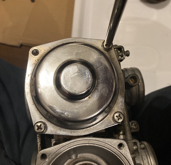 1番から4番まで、キャブレターの番号が分かる様に、ダイヤフラムカバーに番号シールを貼ってありましたので、それを剥がします。