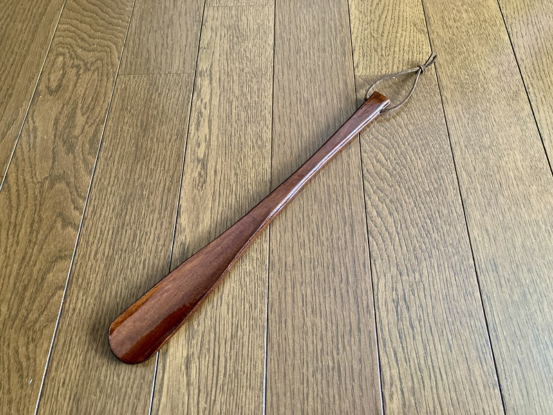 この靴ベラを知り合い数人に見せてみせて、『買った値段はいくらだと思う?』と聞いてみたところ、平均価格は約3,000円で、最高価格は8,000円でした。見た感じが、高級素材の『紫檀』っぽく見えるみたいですね。