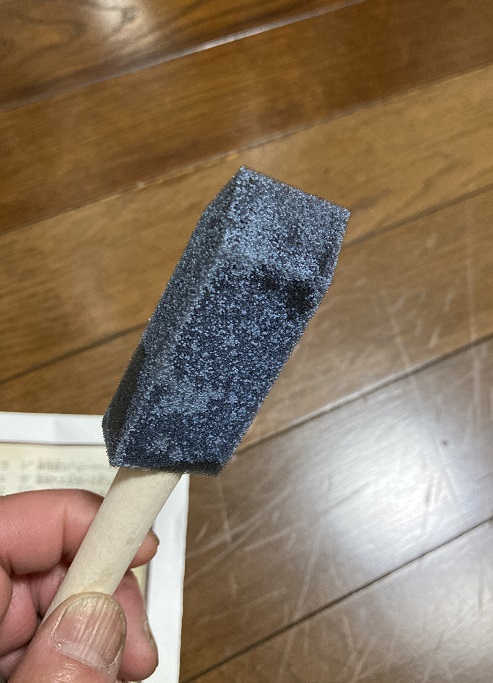 塗るのに使用したのはこちらのスポンジブラシです。水性のウレタンクリアですので、とても扱いやすくて良いですね。