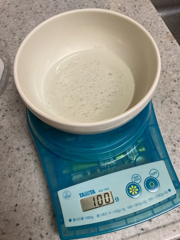 電子レンジ使用可能な器に、100gの水飴を入れます。