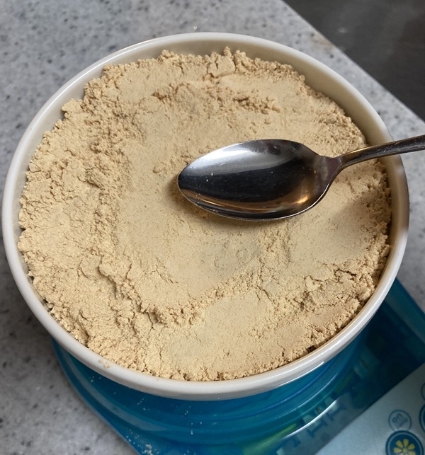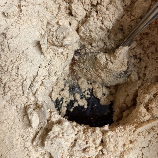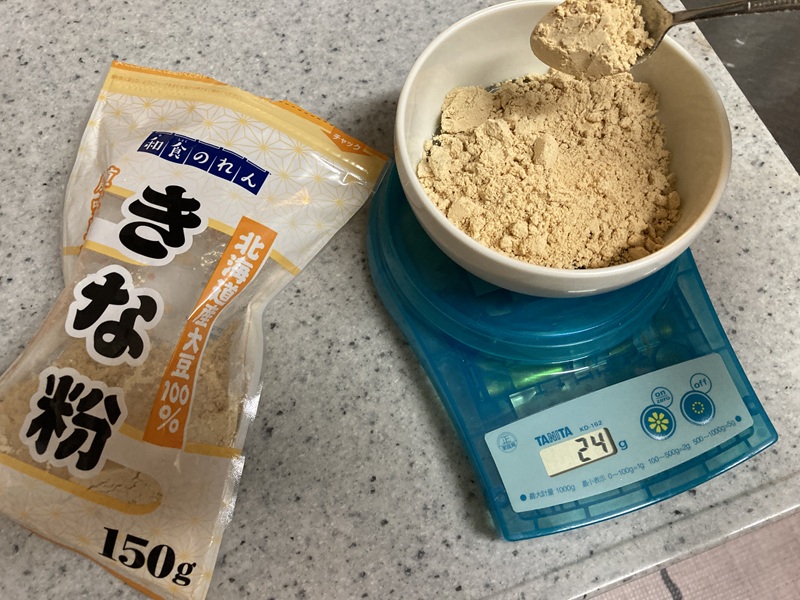 どんどん投入していきます。きな粉は軽いので、結構な量が投入されていきます。