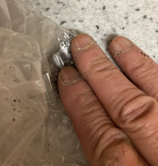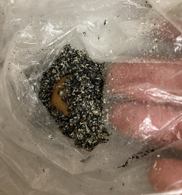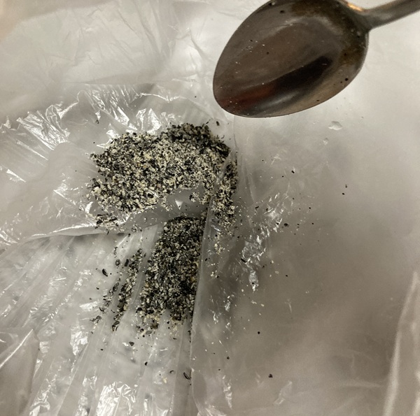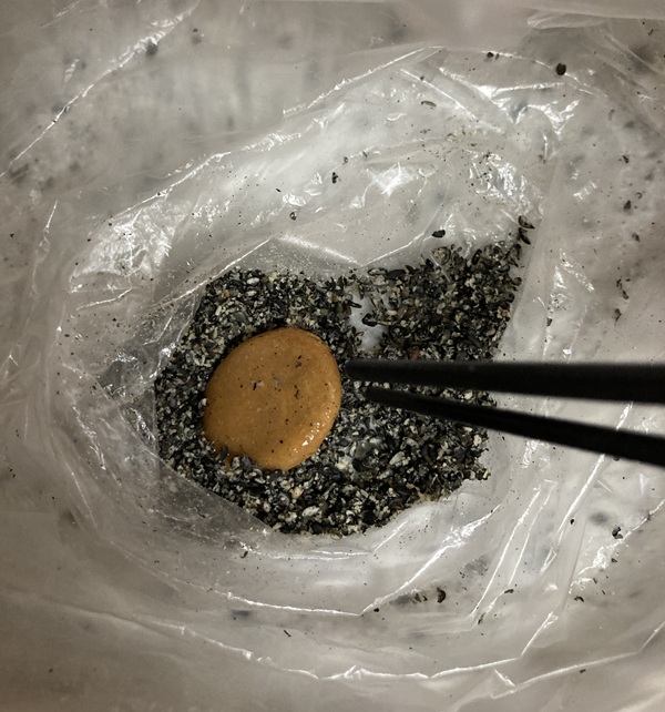 ビニール袋に一粒分の黒ゴマを入れます。