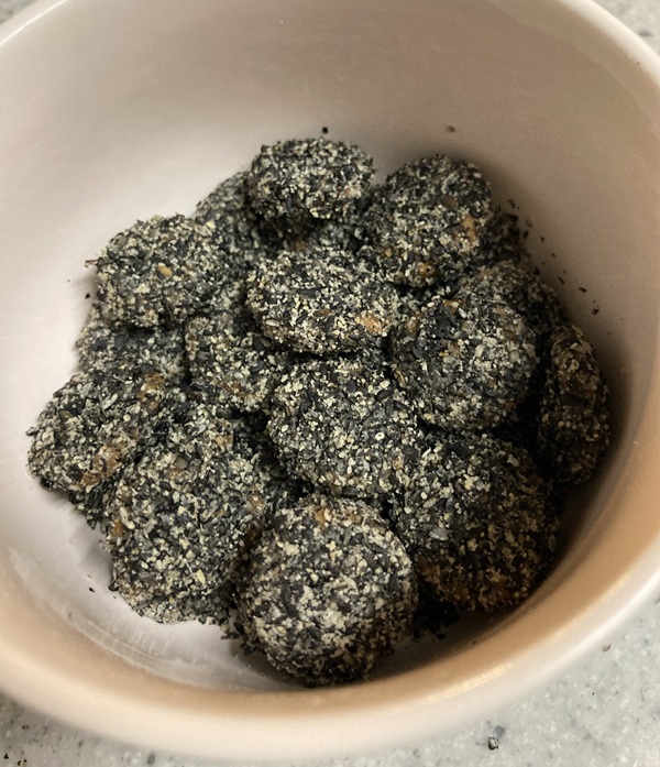 なので、手間はかかりますが一粒づつきちんと黒ゴマをまぶすことにしました。