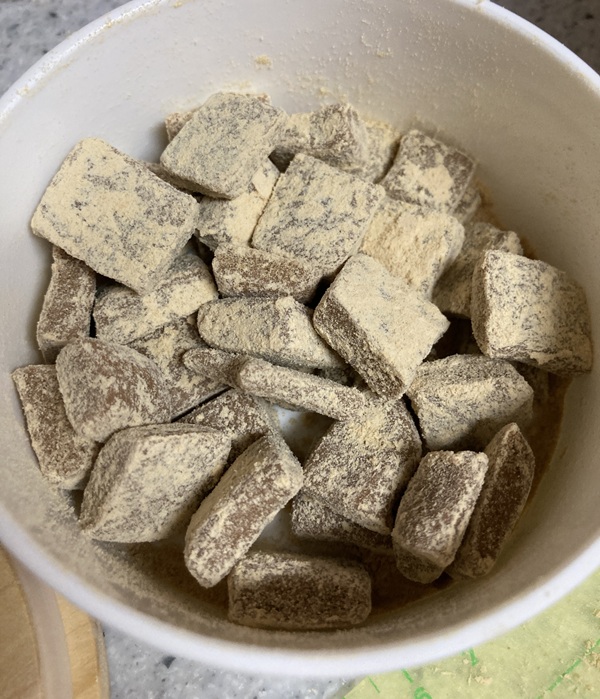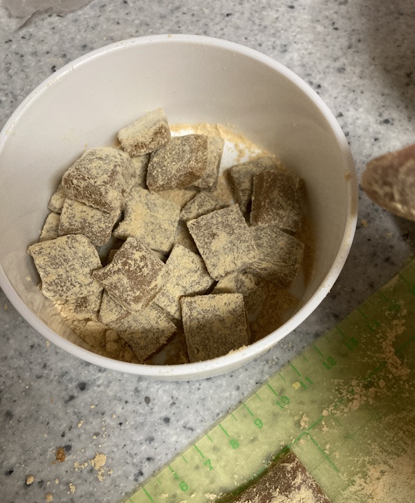 きな粉キャラメルのすり黒ゴマまぶしを作りましょう('ω’)ノ