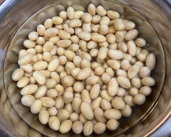 乾燥大豆を水で戻しましょう('ω’)ノ