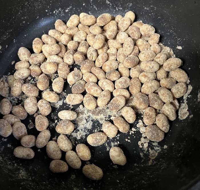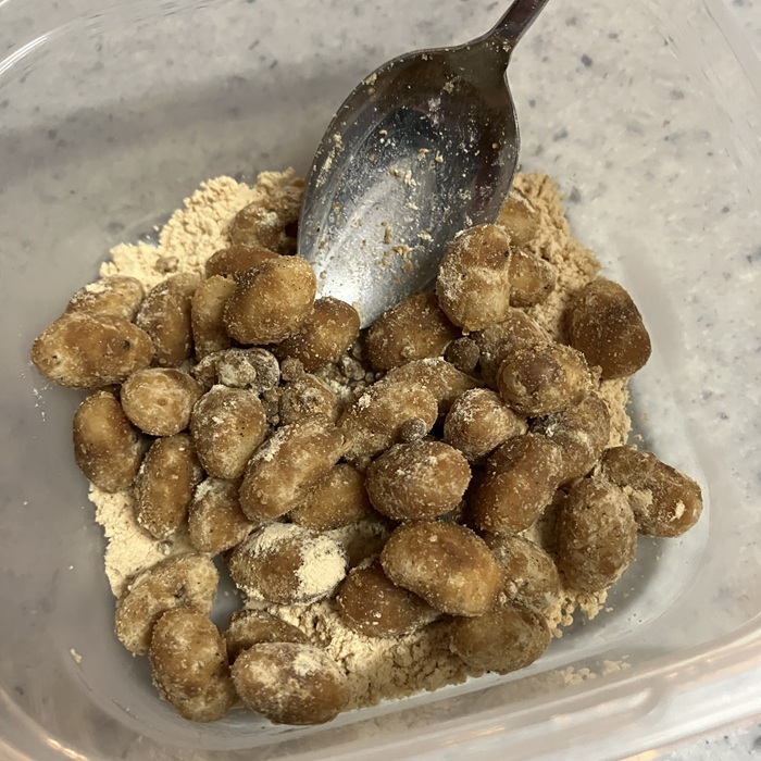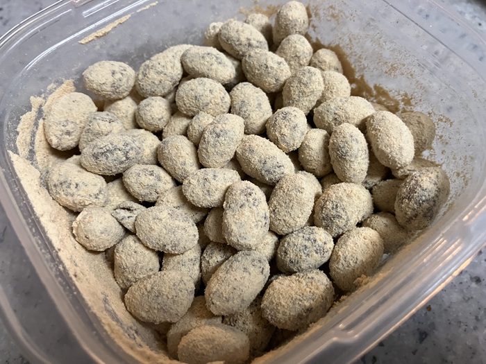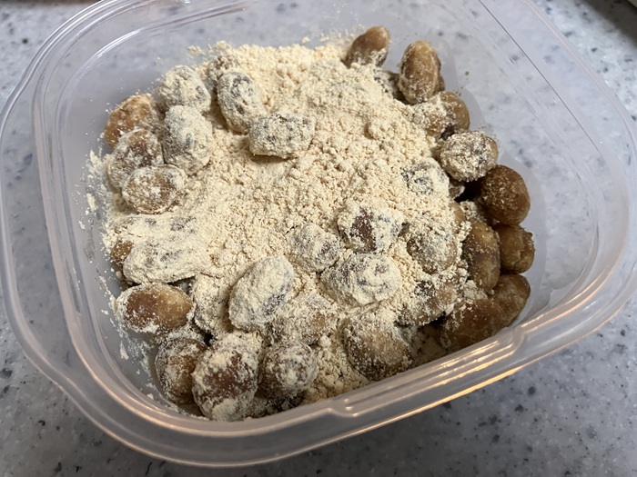 黒糖きな粉を全部使い切りました。ええ感じでコーティングされていますね(´▽`)。