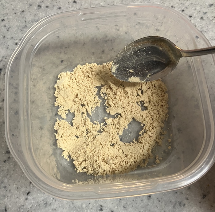 タッパにきな粉を敷きます。