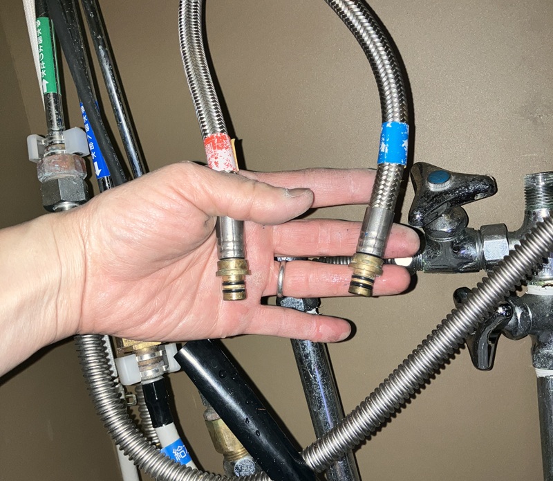 これで取付け準備が出来ました。では現在付いているシャワー水栓を取り外します。