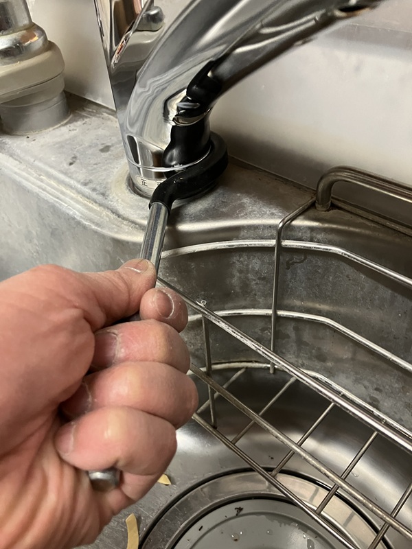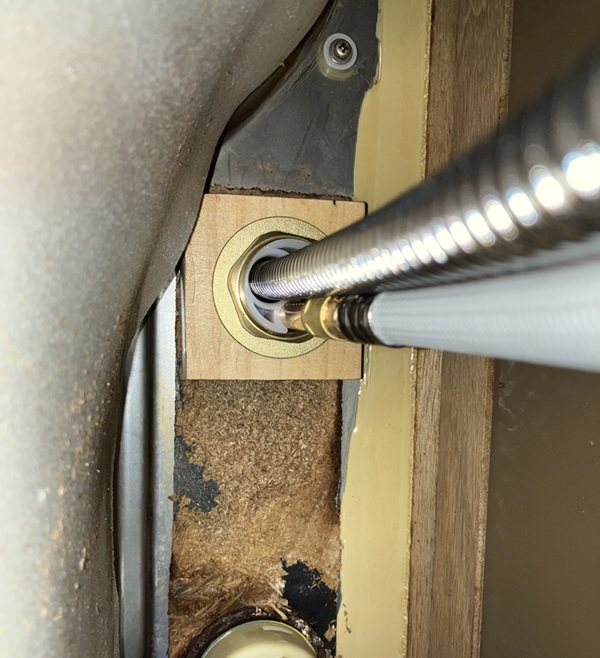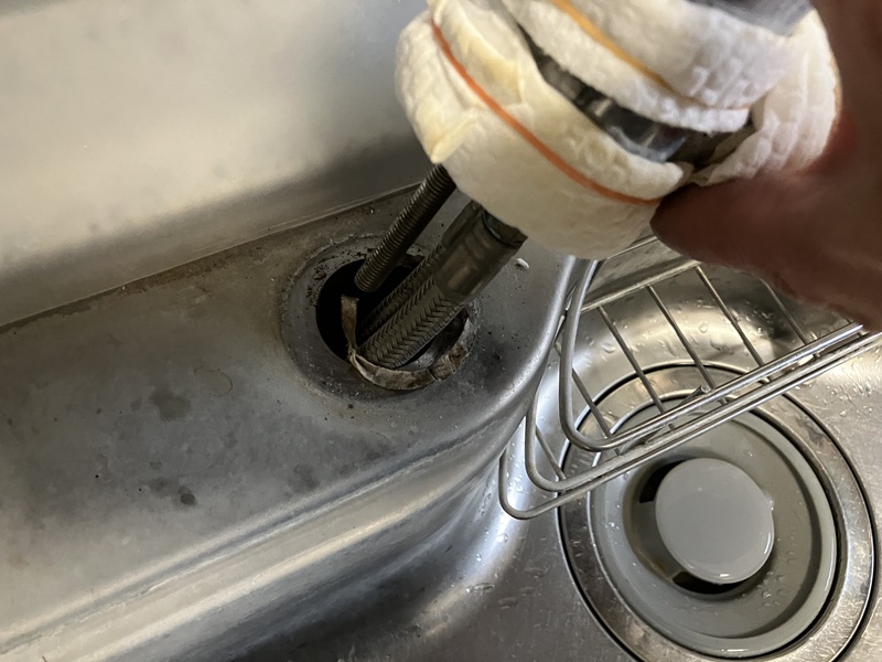 続いてシャワー水栓をステンレス台座下からナット留めします。