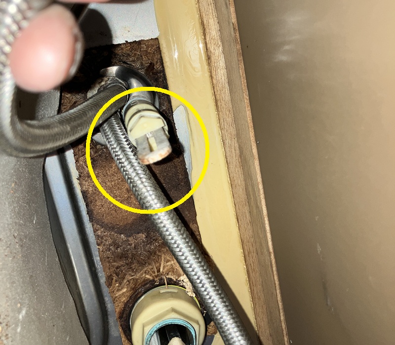 シャワー水栓についているボルト軸がフレキシブルレンチのナット穴に入り、締め付けられることで固定される仕組みとなっています。ということはこのボルト軸一本だけで固定されていた訳で、こんなレベルで大丈夫だったのかと正直少し驚きました。