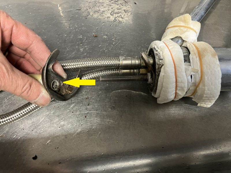 因みにシャワー水栓を外した後、水栓から取り外したフレキシブルレンチ付き締め付け金具です。