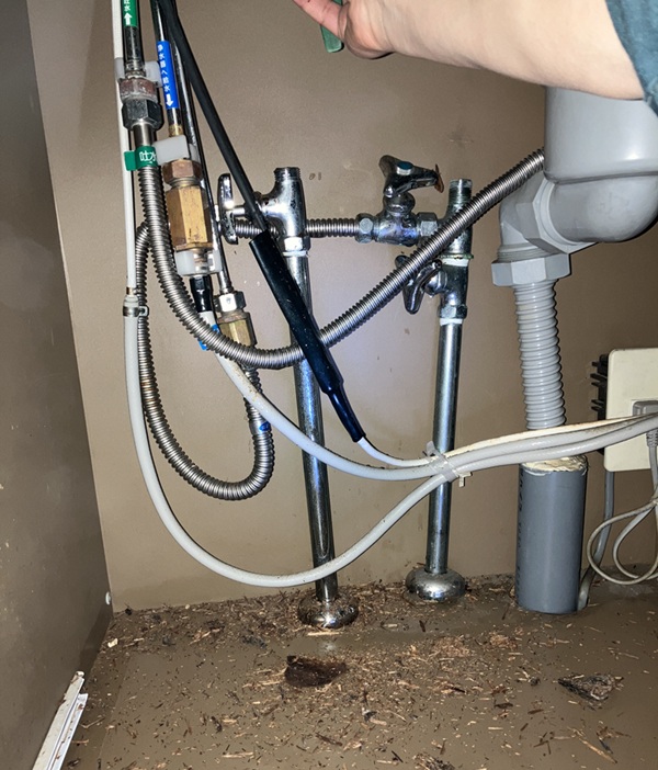 シャワー水栓取り付け場所を綺麗にしておきます。