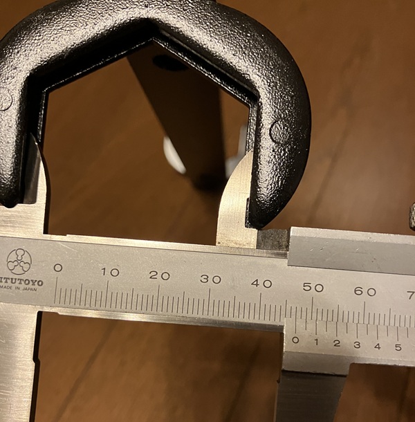 ・・・で購入した工具の46mmナット用レンチの内径を測ってみたところ、ぴったり47mmでした。で、試しに洗面所のセパレート水栓の47mmナットにあてがってみたところ、なんとぴったりで使えちゃいました。もちろんこれも現状付いているナット寸法にはまったということで、どんな47mmナットでも確実に外せるということではないかと思いますので、あくまでご参考としてとらえて頂ければと思います。