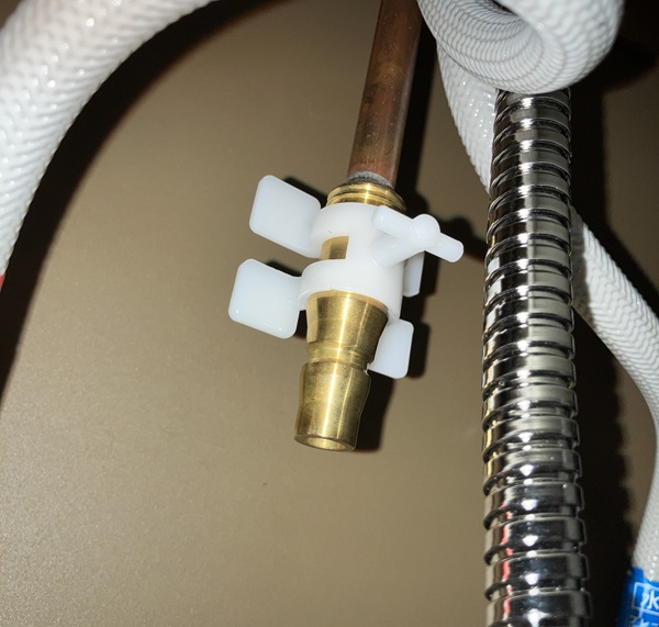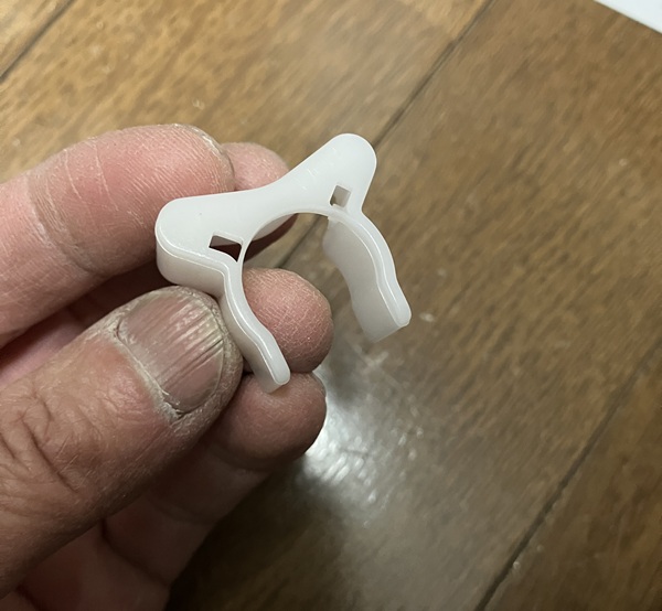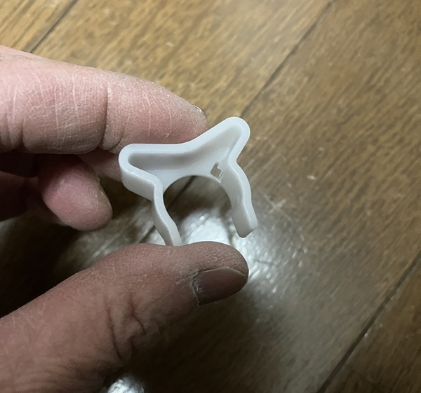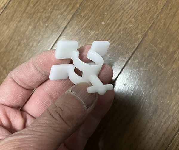 これがシャワーホースに繋がるプラグです。ここにストッパーとなるホースガイドを取り付けます。