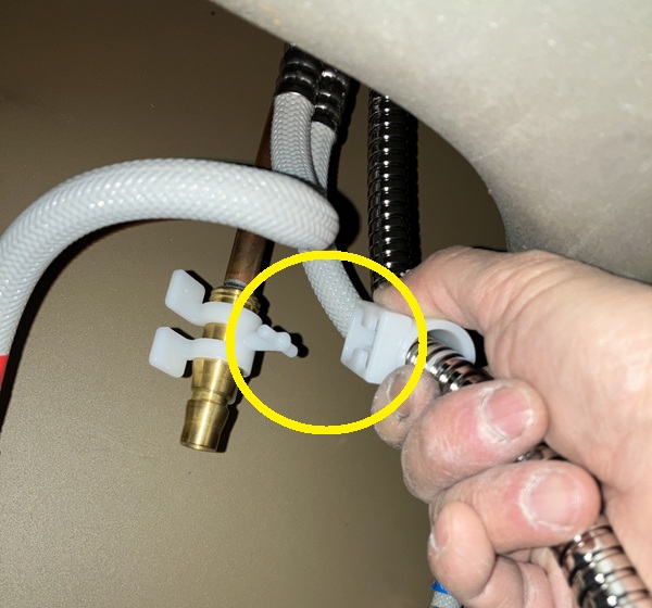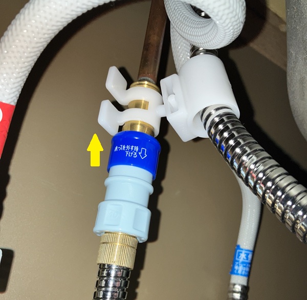 このホースを外す際は、リングパーツを掴んで下に引き下げればホースは外れます。