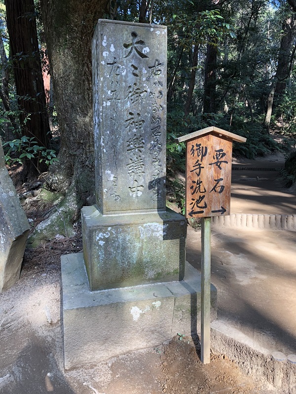 要石と逆側の御手洗池へは、かなり急な坂道を下ることになります。初めてこちらにお参りした時が半端ない猛暑日で、帰りの登坂にて汗だくになった記憶があり、それ以来ここへは一旦駐車場に戻り、あらためてバイクにて乗りつけるようにしています。