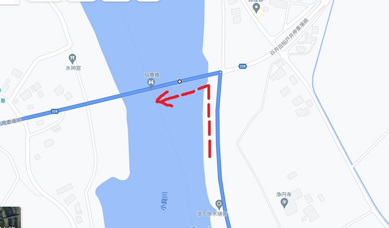 ほどなく見えてきた橋を左折で渡り・・・