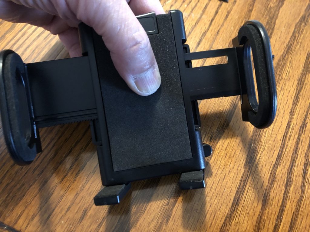 組み上がったスマホホルダー、問題なく作動するかを試してみました。
