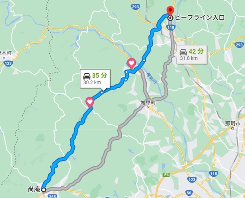 スタート地点は国道50号線から入った『石挽きそば家 尚庵』を目印にすると良いかと思います。ここのお蕎麦、一度いただいたことがありますが、美味しいです( `ー´)ノ