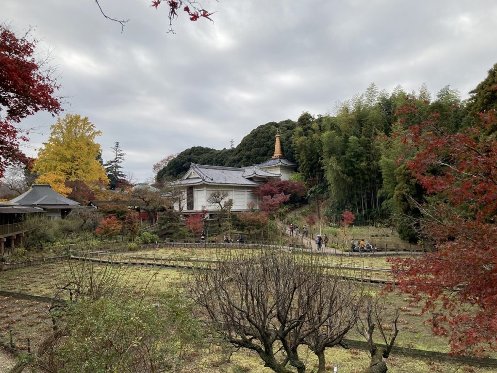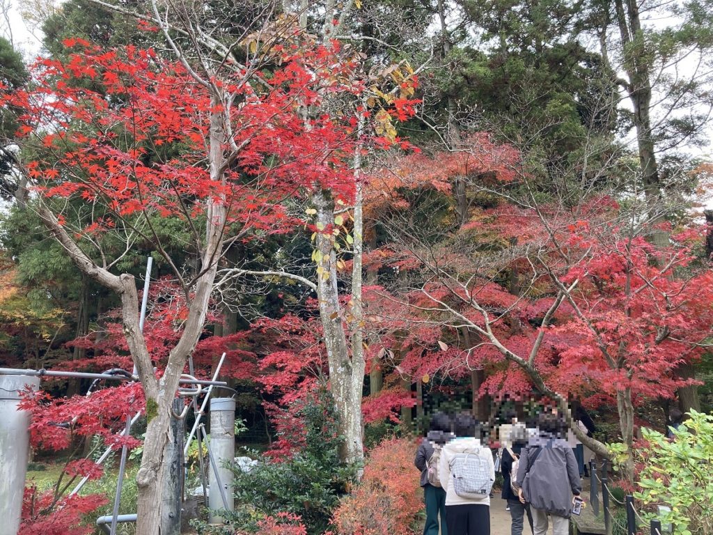 本堂側に抜けることが出来ますが、本堂の裏側の道を行くと、道の周りは色とりどりの紅葉で最高に綺麗です。