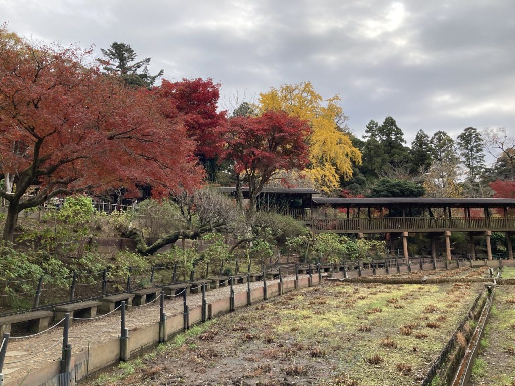 遠くに見えるのが宝物殿です。眼下に広がるのは菖蒲池。季節になると花菖蒲が咲き乱れるそうですが、管理人はまだ見たことはないです(;´∀`)