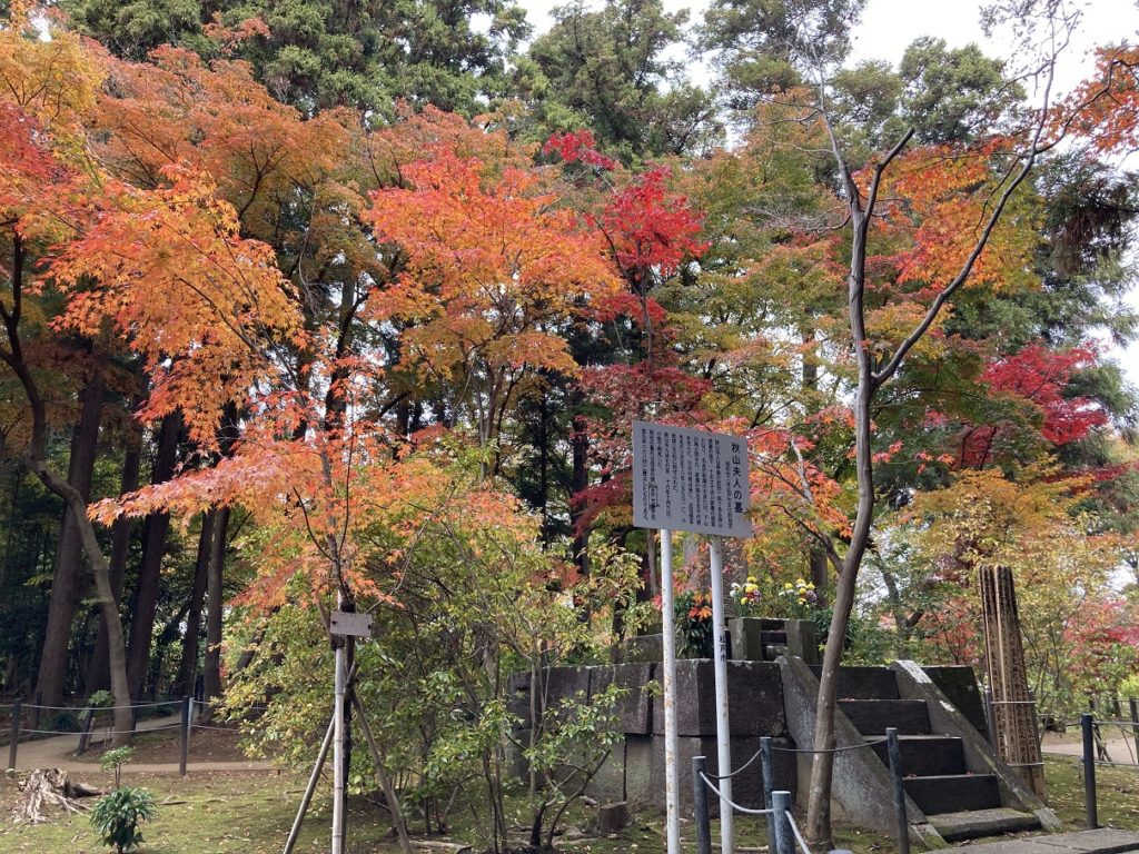 本堂に抜ける順路に、徳川家康の側室であった秋山夫人のお墓があります。小金にて病で亡くなられたそうで、この墓石は徳川家康と血縁関係にあった水戸光圀、そう水戸黄門のモデルとなったあのお方が建てられたそうです(-ω-)/。