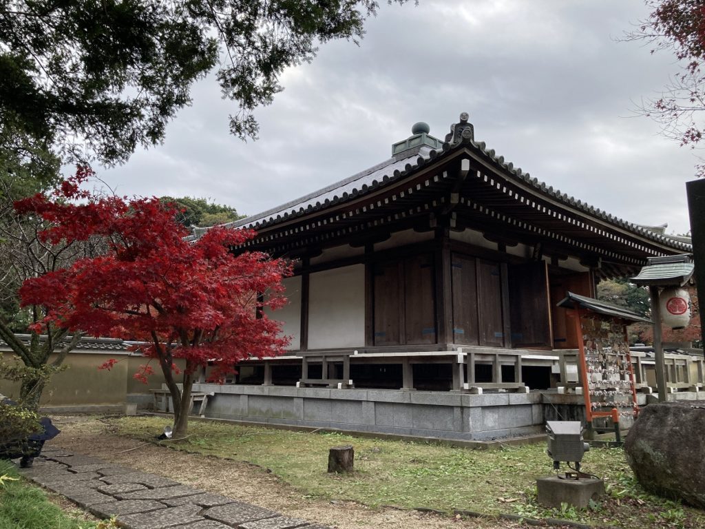 その先左側には観音堂があります。この脇の紅葉の色合いはとても素晴らしい鮮やかな『紅(あか)』でした。