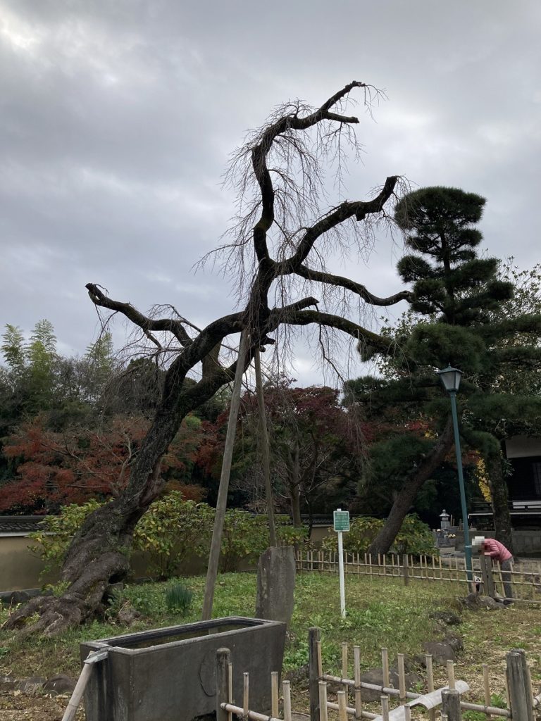 本堂前左側には、樹齢340年を超える、有名な『枝垂桜』があります。