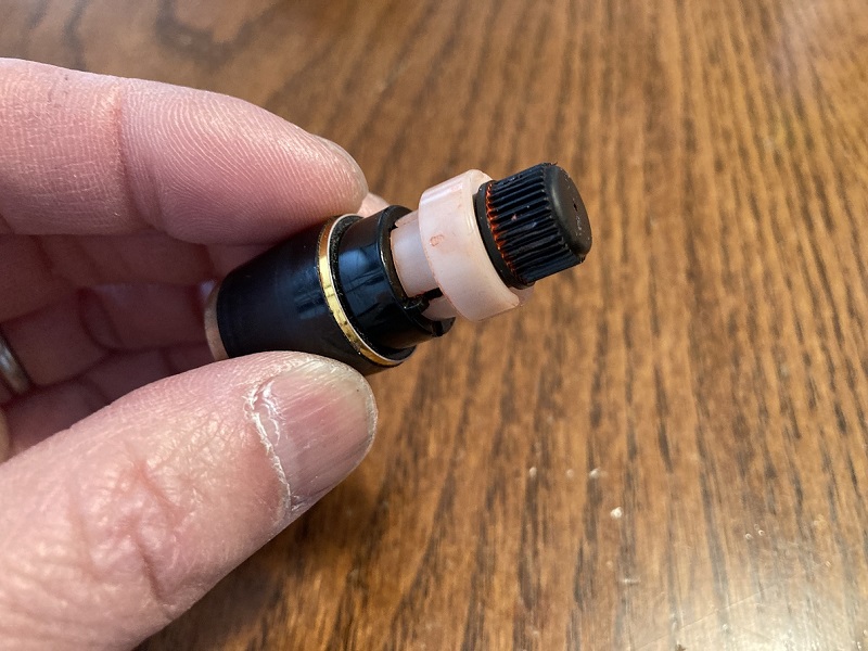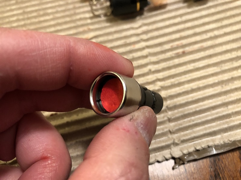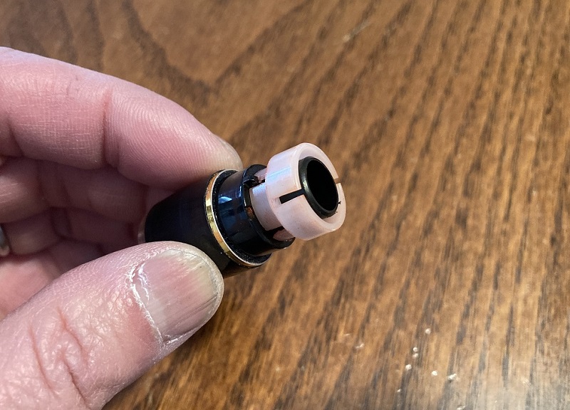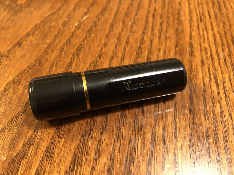 白いリング状のパーツをはめます。これがしっかりはまっていないと、使っている間に印面含めた内部パーツが飛び出してきますので要注意です。しっかりはまった時には、『パチッン!』と音がします。