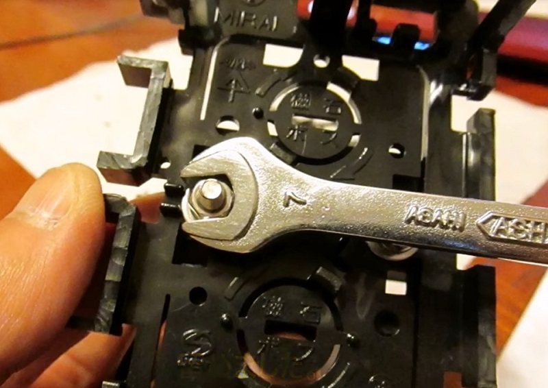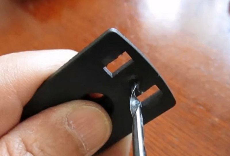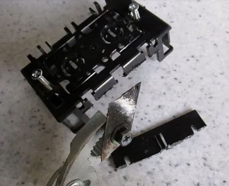 スライドボックスへの取付けに邪魔となるクランプの4つのツメを折って平らにします。