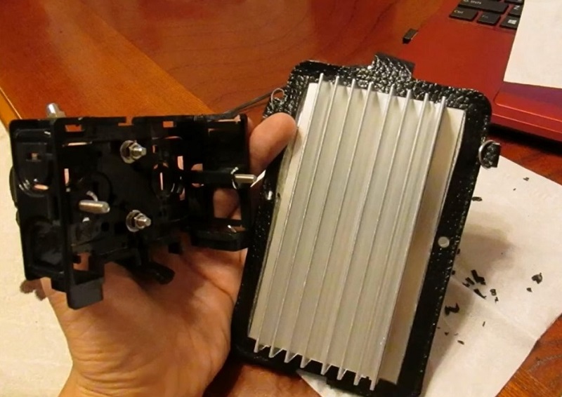 こんな感じで組み合わせますので、ヒートシンクを跨ぐことが出来るように、スライドボックスの上下部分を切除します。