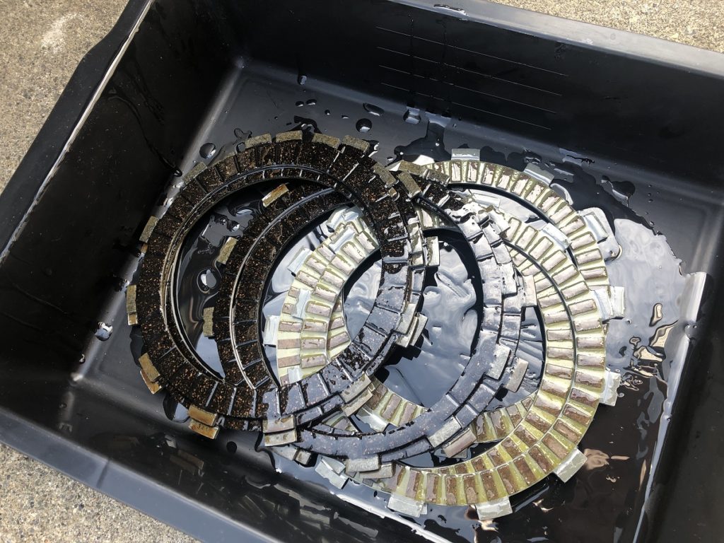 新品フリクションプレートはエンジンオイル漬けにしてから組み付けます。
