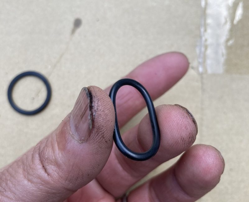 外したOリングは、柔軟性に欠けているどころか、カチコチといった感じ。これでは漏れてきますね( ゚Д゚)。