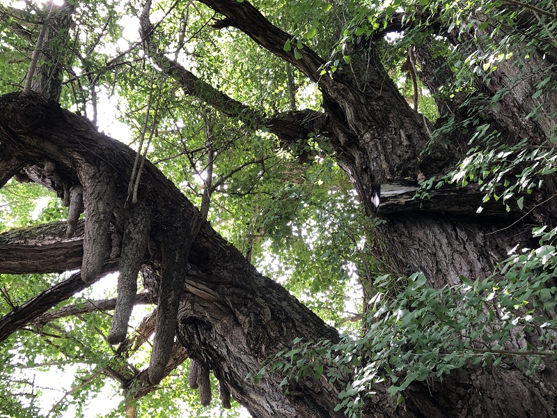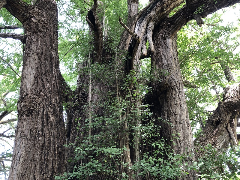 大きいイチョウにはお約束の乳柱(気根)も垂れ下がっています。しばらく周りをぐるぐると回ってしまいました。本当にすごい迫力です。