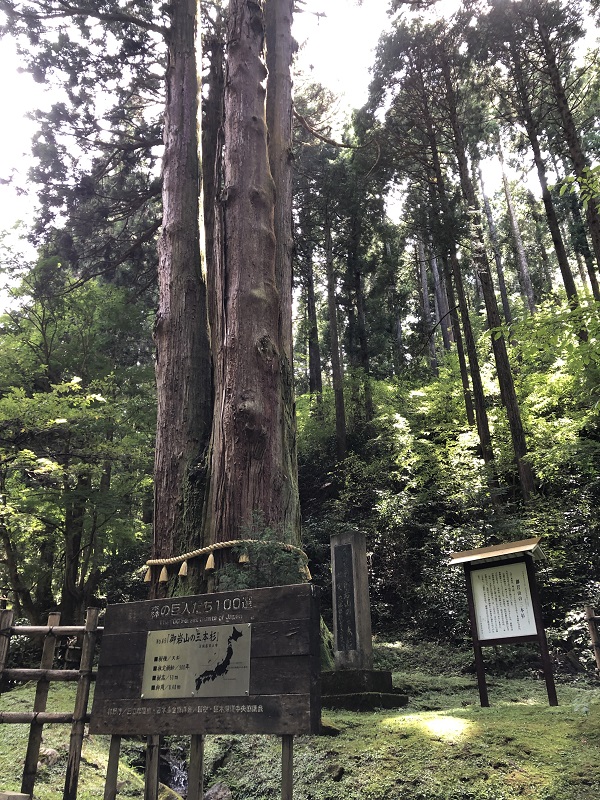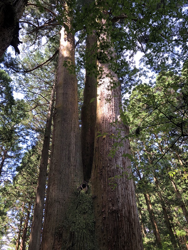 3本杉とは、3本に分かれている杉なのです。もっと近くに寄って写真と撮ってみると・・・