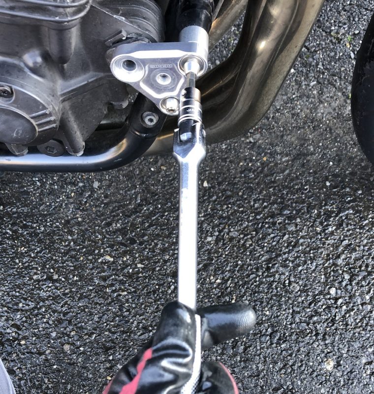 流石XJR1200、1300の専用設計品ですね。エンジンマウントボルトとギリギリの隙間でかわしていました。